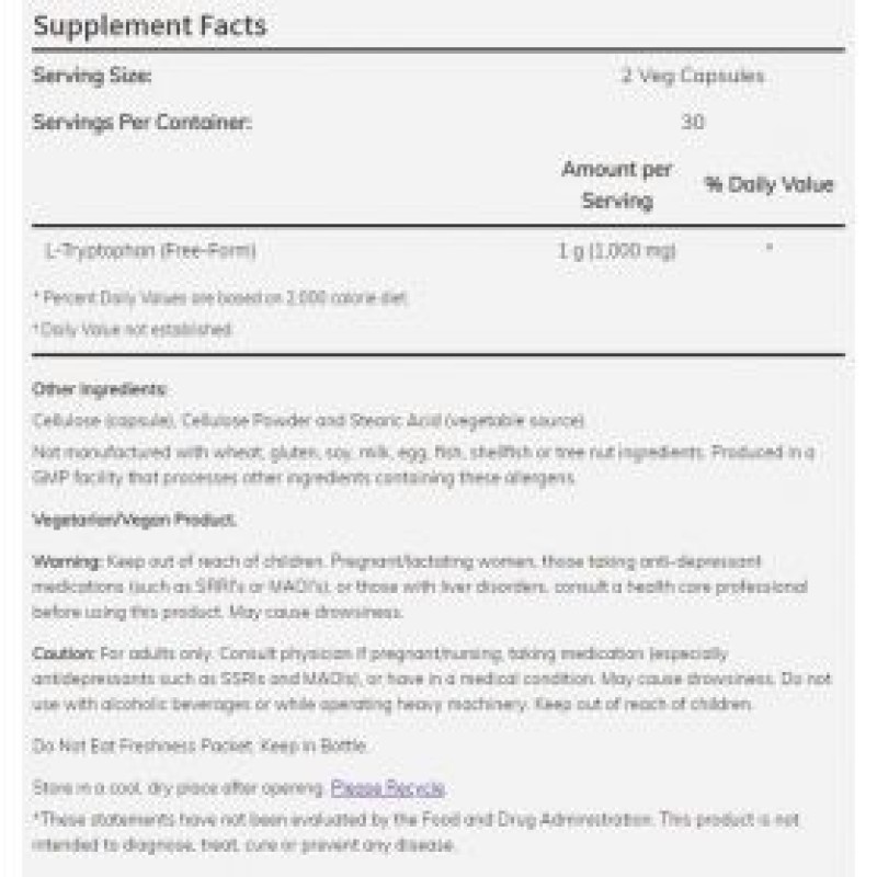 NOW Foods - L-Tryptophan 500 mg Veg 60 tabs Now foods